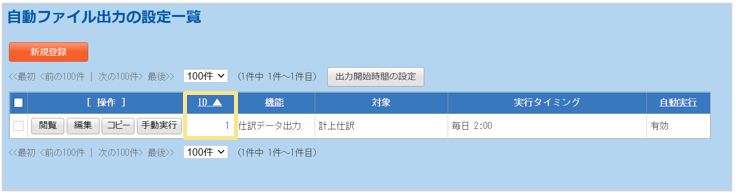 「自動ファイル出力設定ID」を複数登録する必要がある際には、