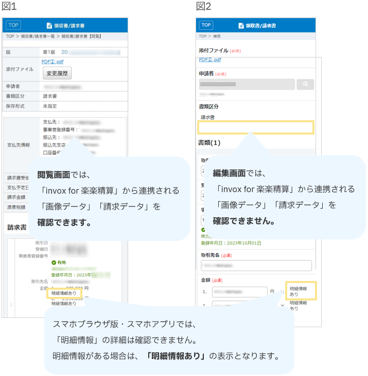 「invox for 楽楽精算」から「楽楽精算」に連携されるデータは2種類あります。