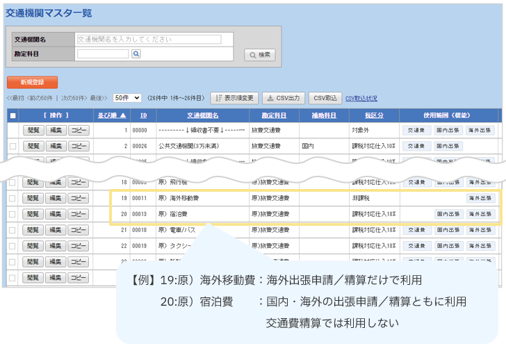 これまで交通系の種別を利用していない場合は、「交通機関マスタ」を設定していない可能性があります。必要に応じてマスタの修正や更新を行ってください。
