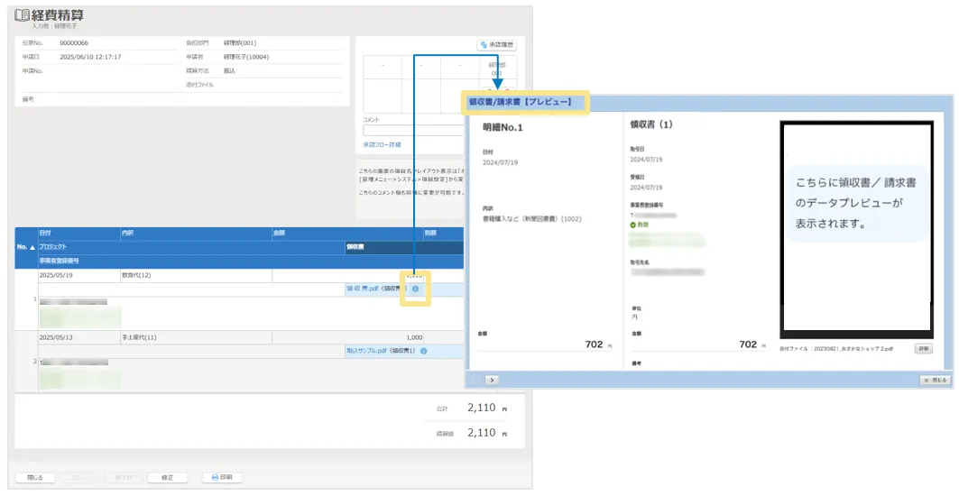 領収書/請求書のプレビュー表示機能の追加を行いました。