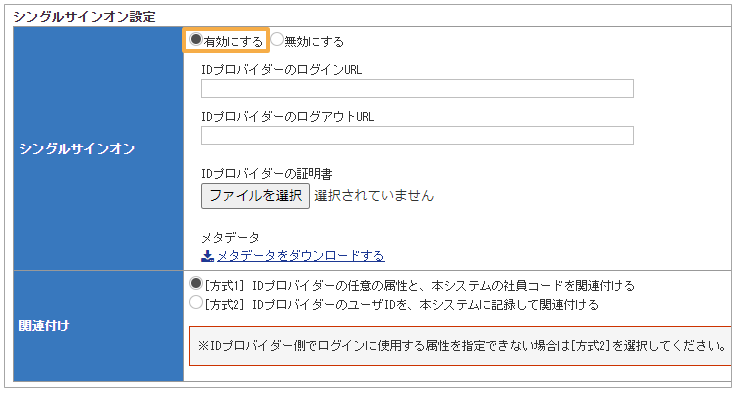 無効の状態ではシングルサインオン機能が利用できませんのでご注意ください。