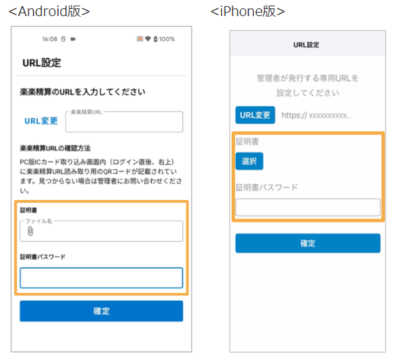 - 「楽楽精算ICリーダー」アプリを開き「楽楽精算」のURLを入力