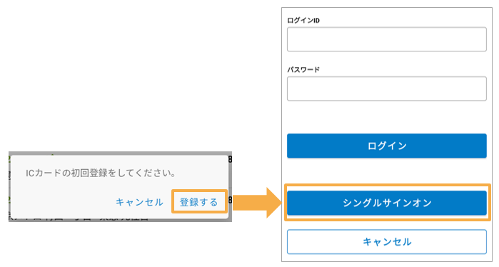 ■シングルサインオンイメージ(「楽楽精算ICリーダー」アプリ)