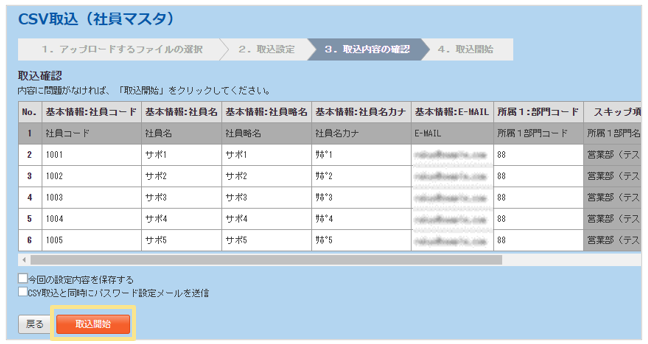 4. 取込内容を確認し、「取込開始」ボタンをクリック