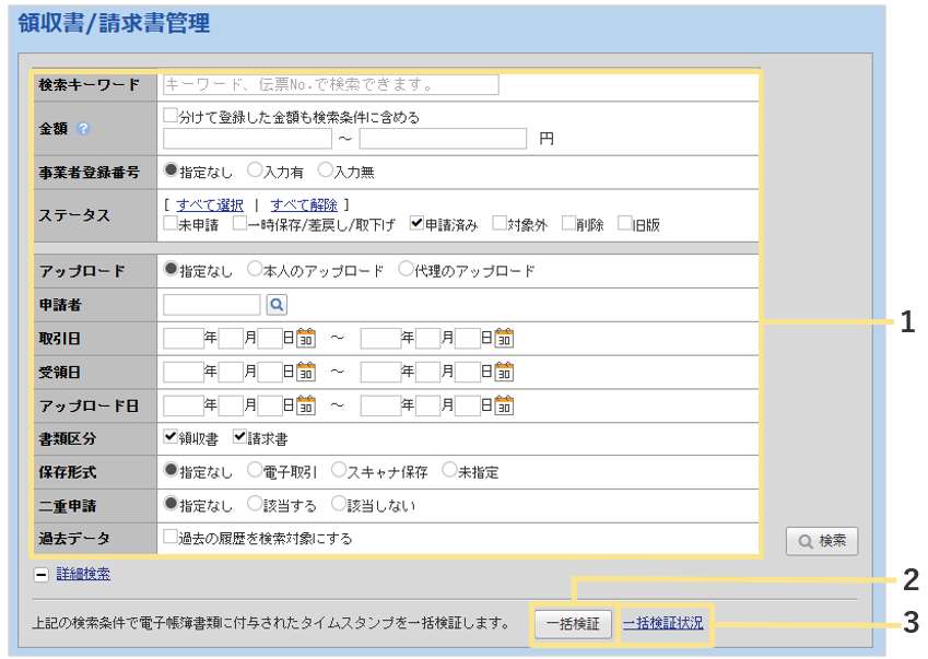 1.一括検証実行時の検索条件が表示されます