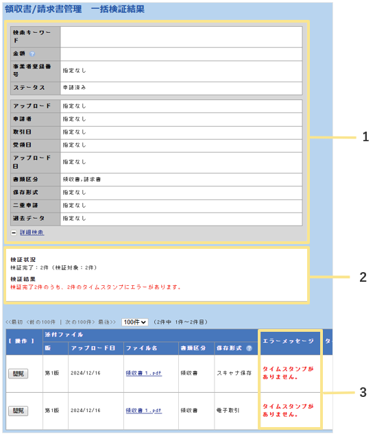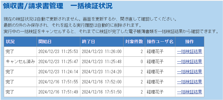 3.領収書/請求書の一括検証結果が表示されます