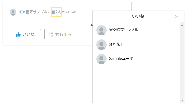 「いいね」をクリックすると、ご登録のアイコン・表示名が表示されます。