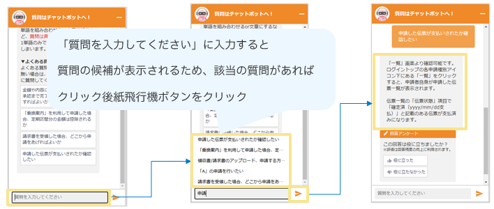 ※初期表示される選択肢に該当の質問がない場合は、紙飛行機ボタンをクリック後、