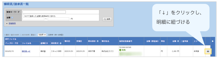 修正しなかった明細についても領収書/請求書の紐づけをし直す必要があります。