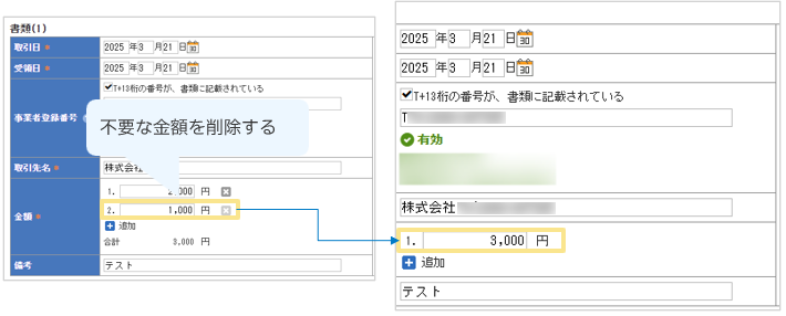 詳細の手順は、「金額」や「書類」の削除をする際の修正手順 をご確認ください。![]()