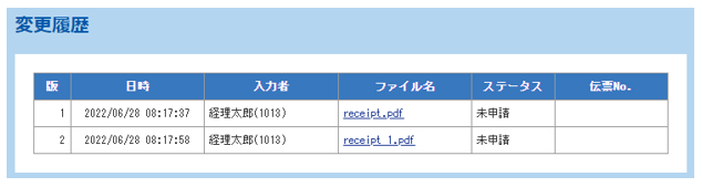 ※領収書/請求書を差し替えた場合、変更履歴が保存されます。