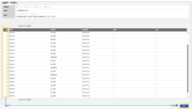 2. 「仕訳区分」は出力したいデータのみにチェックが入っている状態にする