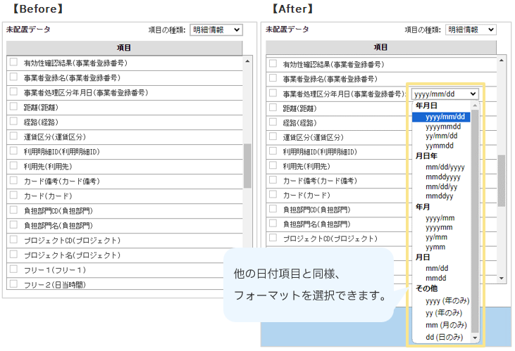 4.「伝票データ出力」 > 「事業者処理区分年月日」を任意のフォーマットに変更できるように