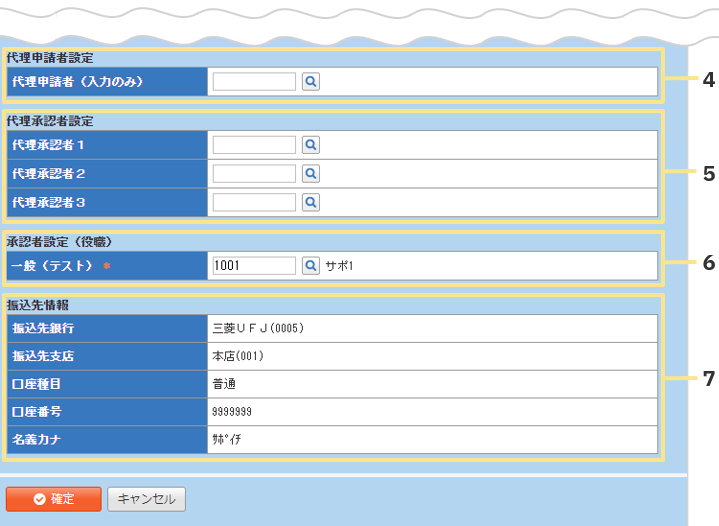本設定では申請者自身で自分の「代理申請者(入力のみ)」を設定できます。