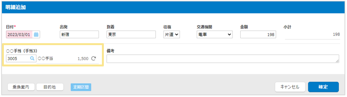 選択肢となる「手当マスタ」で設定した料金が、項目の横に表示されます。