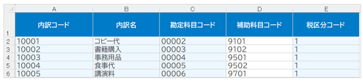 内訳マスタに登録すべき選択肢が整理できたら、今度は会計ソフトの税区分毎に内訳マスタの