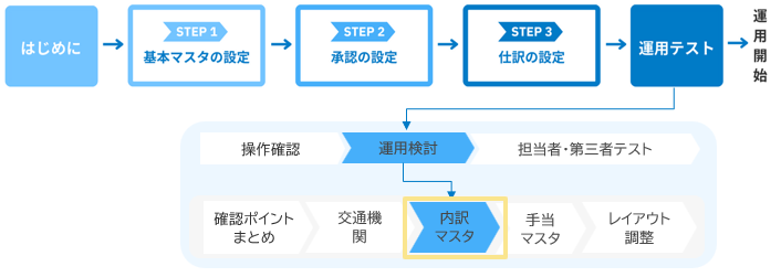 内訳マスタとは ▶利用できる申請種別 ▶作成される仕訳データ 設定の前に準備/検討すること ▶①内訳マスタに登録すべき選択肢の整理 ▶②実際に登録する選択肢の精査 設定方法 設定方法1:CSV取込 設定方法2:画面からの直接入力 |