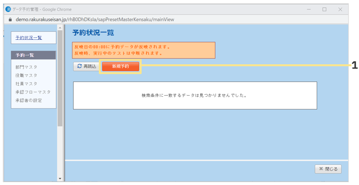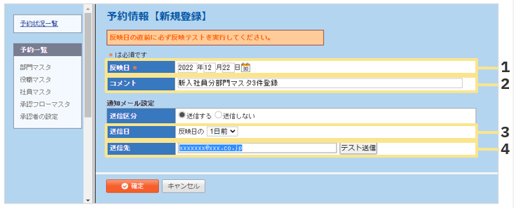 - 「新規予約」をクリックし反映日などを設定