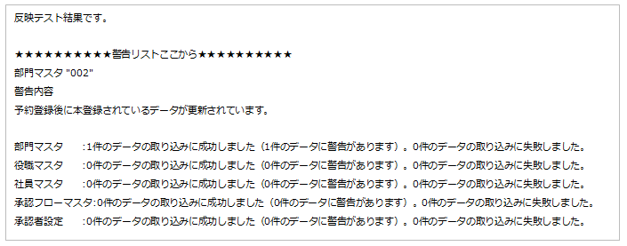 ■反映テストの結果の例(警告がない場合)