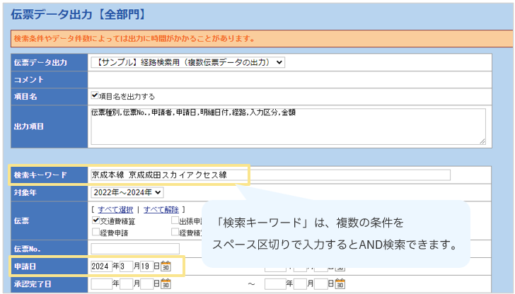 4.出力項目に「経路」、「金額」、そのほか必要な情報を追加