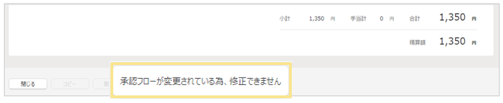 承認者は伝票を修正することができません。「修正」ボタンがグレーアウトされ、