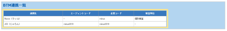 BTMシステムとの連携に必要な情報が表示されています。