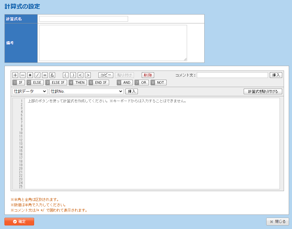 パソコンのキーボードを利用して、計算式を直接入力することはできません。