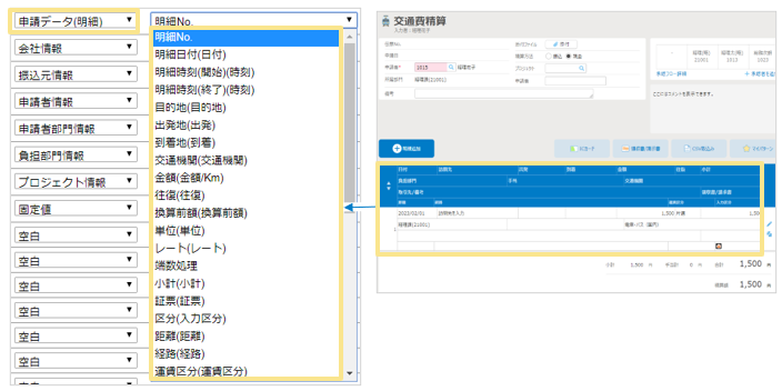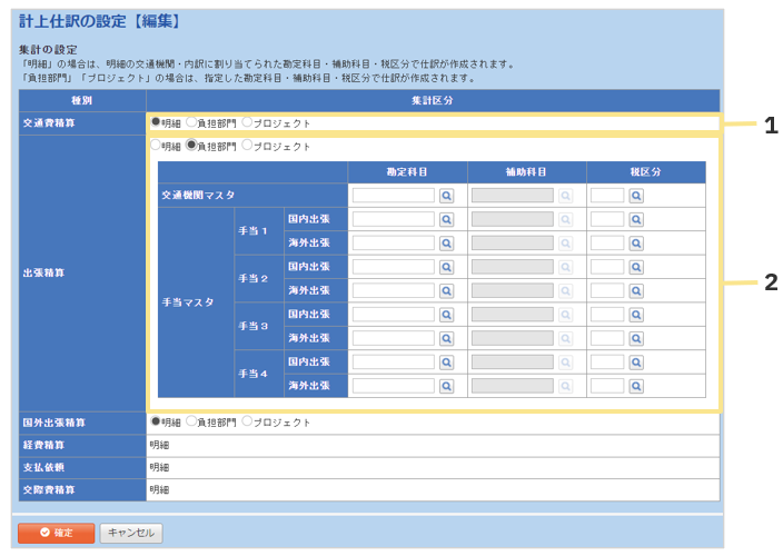 交通費精算/出張精算/海外出張精算で集計区分を「明細」「負担部門」「プロジェクト」から