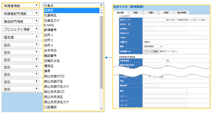 申請者の「社員マスタ」に登録されている内容が出力されます。