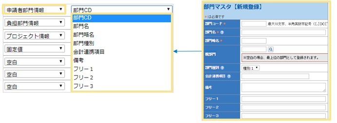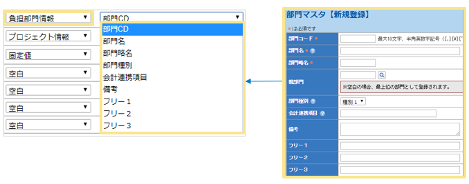 「部門マスタ」に設定した内容を選択できます。負担部門に登録されている情報が出力されます。