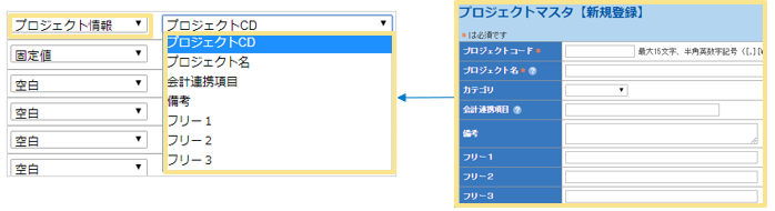 「プロジェクトマスタ」に設定した内容を選択できます。