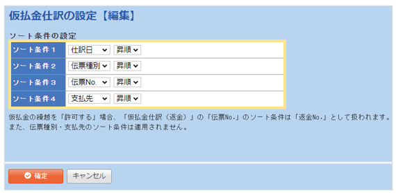 ソート条件1~4の順番で、仮払金仕訳のプレビュー画面で表示される仕訳がソートされます。