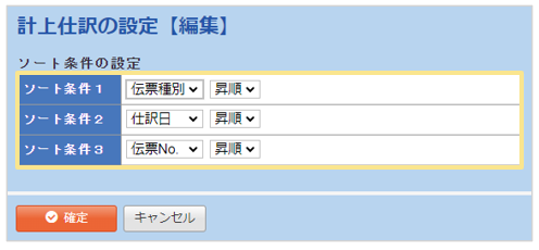 ソート条件1~3の順番で、計上仕訳のプレビュー画面に表示される仕訳がソートされます。