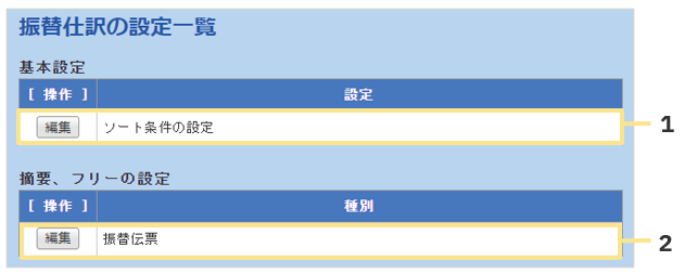 - 本マニュアルでは「管理」タブ >「仕訳の設定」欄の