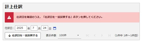 「仕訳日を一括反映する」を実施しない場合はエラーとなります。