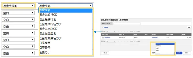 「仮払金精算確認処理」で指定する「返金先」の内容を選択できます。