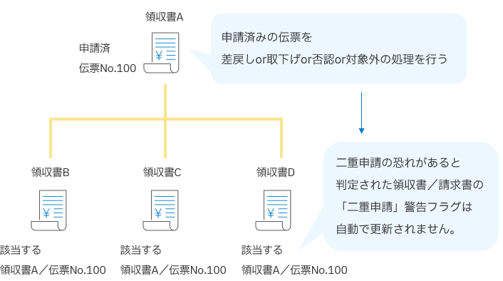 二重申請の恐れがあると判定された領収書/請求書は二重申請に該当しなくなりますが、