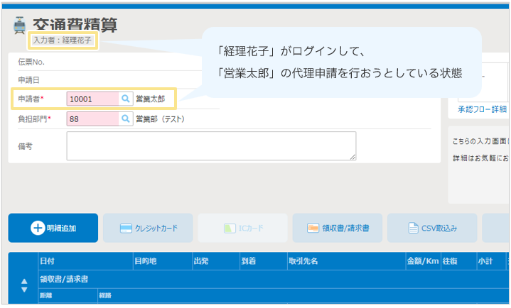 ※「代理申請者」or「代理申請(入力のみ)」に設定されたユーザー