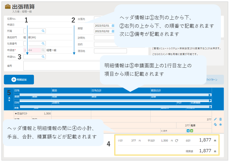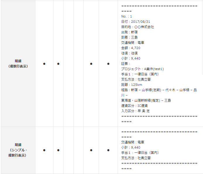 通知メールの本文に表示されるヘッダ情報および明細情報は以下の順番で表示されます。