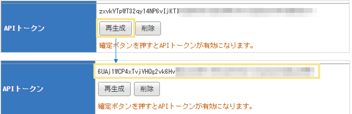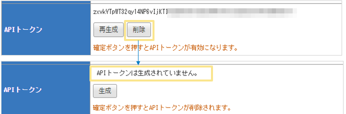 APIトークン欄の「生成」ボタンをクリックし、APIトークンを生成します。