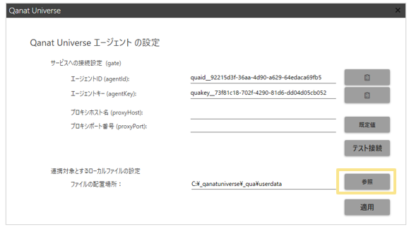 「Qanat Universe Agent(エージェント)」の「ファイルの配置場所」をご確認ください。