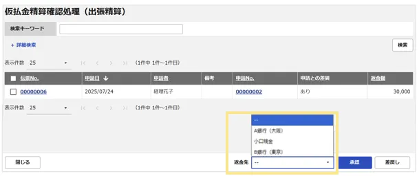 ※「振込元」を選択することで、自動的に支払仕訳の貸方が決定します。 - 仮払金の運用を行う際は、「返金先」の選択肢としても使用します。