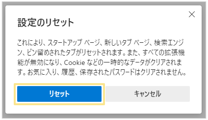 - メッセージの内容を確認してから「リセット」をクリック
