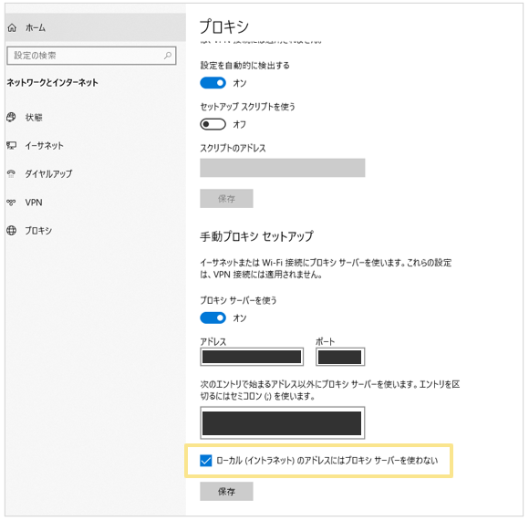 ・プロキシの設定の無効化