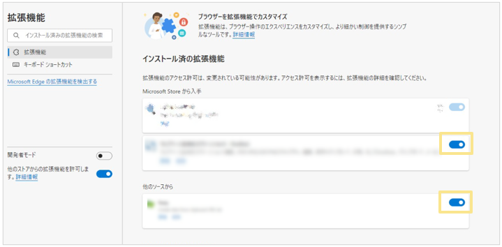 - 「拡張機能の管理」をクリック