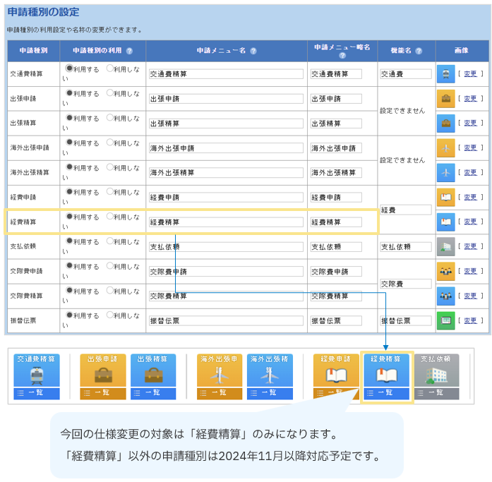 - 「経費精算」以外の申請種別は、引き続き、承認時の申請内容の修正権限があっても