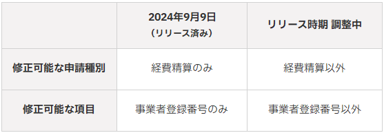 ※修正可能な「申請種別」の拡大2024年11月を予定しております。