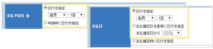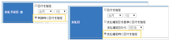 (申請時、支払確定時に日付を入力する設定にしている)場合は、入力した支払日が
