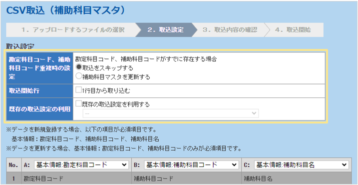 そのため、「勘定科目マスタ」「補助科目マスタ」に登録する情報の判断がつかない場合は、