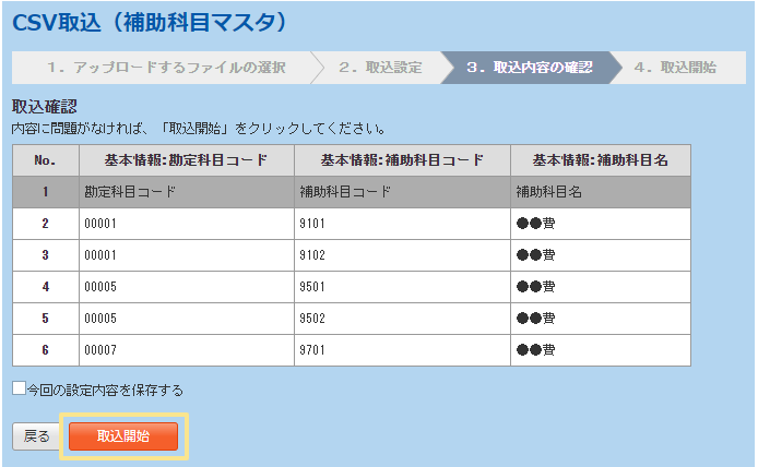 11.取込完了後、「補助科目マスタ」の一覧が表示されます。